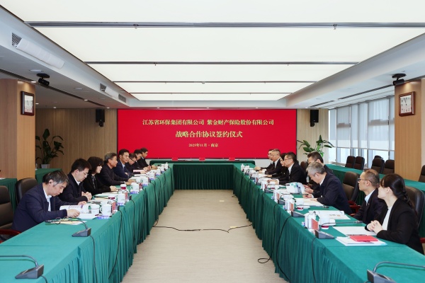 方斌斌对紫金保险一行的到来表示热烈欢迎。他表示,紫金保险作为全省首家全国性财产保险公司,是江苏金融“四梁八柱”体系中的重要支柱,更是服务实体经济、护航绿色发展的重要金融力量。此次战略合作,必将开启双方优势互补、合作共赢的新篇章。围绕双方未来合作,他强调,一要共建全链条的安全保障体系,为高质量发展夯基固本。希望紫金保险发挥专业优势,针对省环保集团业务特点量身定制保障方案。二要共筑高水平的风险防控格局,为管理升级注入动能。双方可在安全生产领域深化协同,通过联合开展现场查勘、共办风险管理讲座等方式促进良性互动。三要共拓绿色化的合作新空间,为创新发展蓄势赋能。双方加强投资领域的经验分享与合作探索,借鉴紫金保险在金融领域的专业经验,共同研究环保产业投资新路径。