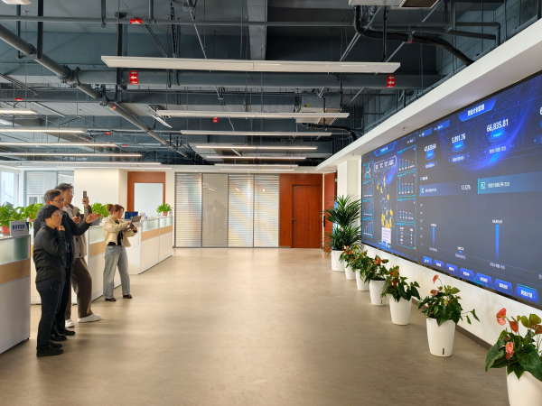 高鹤一行首先参观了集团财务共享中心企业文化展示区,了解财务共享中心发展历程和取得荣誉,观看财务“一体两翼”数据驾驶舱展示,了解整体管理模式及运行情况,观摩财务机器人(RPA)和智能收单柜作业场景。