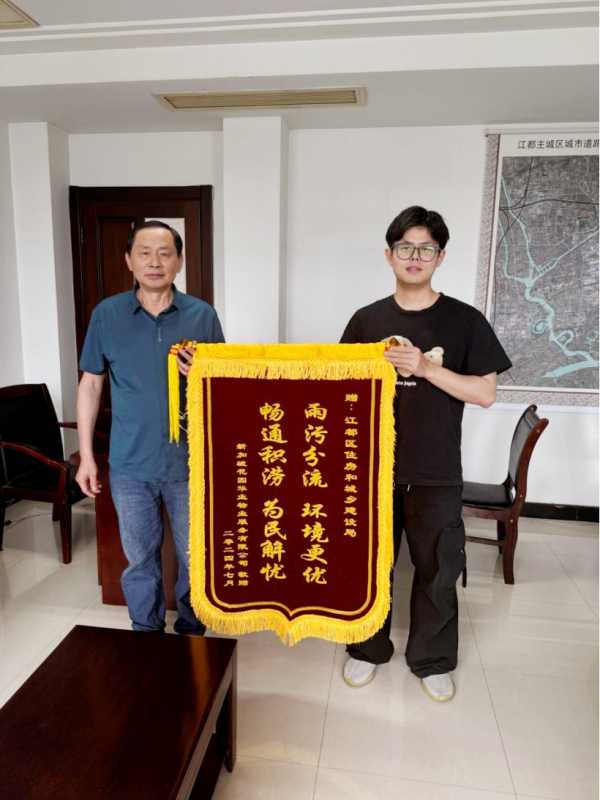 发布日期:2024-07-09 22:03 来源:江苏环保产业股份有限公司 字体:[ 大 中 小 ]“预计今日傍晚到明天扬州城区、江都等地部分地区将出现6小时100毫米以上或小时雨量50毫米以上的强降雨……”近日,一条暴雨黄色预警打响了江都区的防汛发令枪,也吹响了检验省环保集团产业公司江都南区水环境治理项目成效的冲锋号。江都项目部立即按照防汛应急预案,严格落实汛前排查、汛中巡查、汛后核查“三查”措施,最终经受住了这场“大考”,项目实施区域无一积淹,附近小区居民向区住建局赠送“锦旗”点赞。
