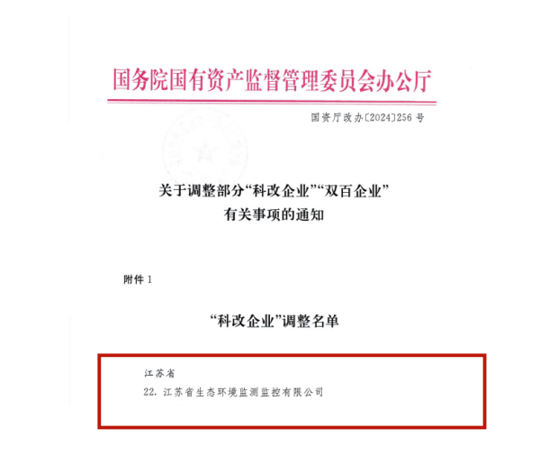 近日,国务院国资委印发《关于调整部分“科改企业”“双百企业”有关事项的通知》(国资厅改办〔2024〕256号),公布最新“科改企业”“双百企业”调整名单,省环保集团所属省生态环境监测监控有限公司成功入选“科改企业”。