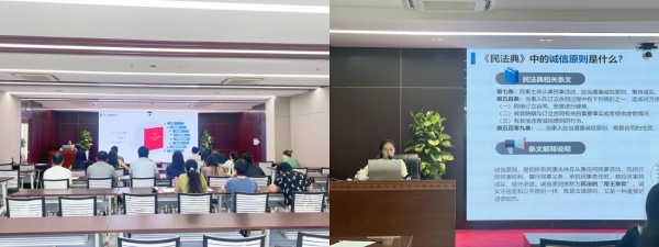 本次培训对民法典进行了重点解读,涉及民法典的编纂历程、总则编、物权编、合同编、人格权编、婚姻家庭编、继承编、侵权责任编等多个方面。为了更加生动有效地对民法典进行宣讲,培训中通过各个真实案例以及互动,让员工可以更加深入地了解法律的基本原则和具体规定,从而增强自身的法律意识。