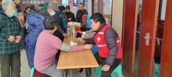 与此同时,在日间照料中心健康监测区也排起了长队。江环公司的两名青年志愿者正有条不紊地为老人们测量血压。志愿者们不仅认真记录下每一位老人的测量数据,还会根据不同数值,耐心地为老人们提出饮食建议。69岁的王大爷血压数值偏高,志愿者贴心细致地叮嘱王大爷:“大爷,您平时可得多注意饮食,尽量清淡些,多吃点低盐、低脂、低糖的食物,还有新鲜水果和豆制品,对身体好。”王大爷听后,脸上满是感动,对志愿者竖起大拇指,称赞道:“这些孩子真是贴心得很!我们问再多问题,他们也一点都不觉得烦,服务太到位了!”
