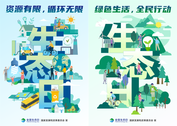 为扎实做好全国生态日组织实施工作,国家发展改革委会同有关方面委托相关单位设计制作了全国生态日标识、招贴画与视觉延展设计,并于日前向社会公开发布,供党政机关、人民团体、企事业单位、社会组织等开展生态文明宣传教育活动使用。