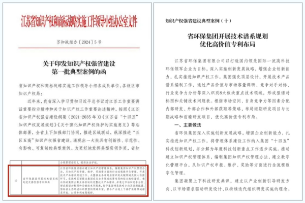 省环保集团入选江苏省知识产权强省建设第一批典型案例