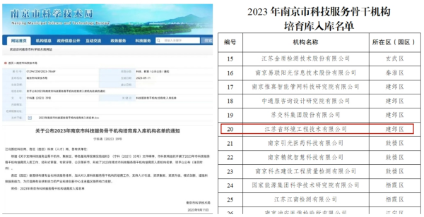 喜报丨省环境工程技术有限公司获得“南京市科技服务骨干机构”认定