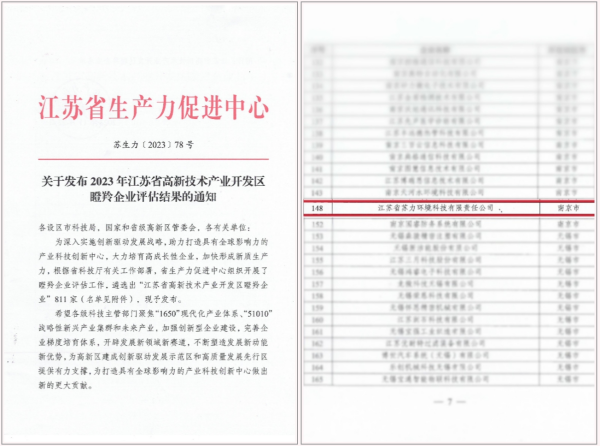 喜报丨省生态环境监测监控有限公司获评江苏省高新技术产业开发区瞪羚企业称号