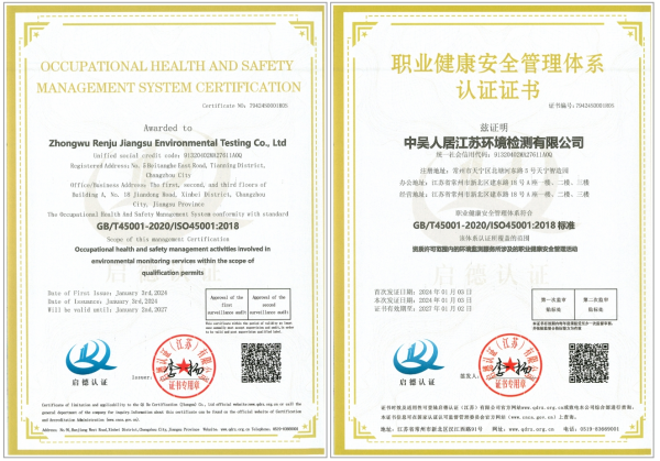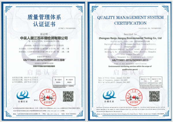 中吴人居江苏环境检测有限公司顺利通过“ISO体系”认证