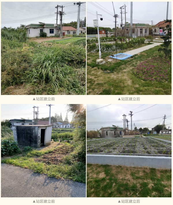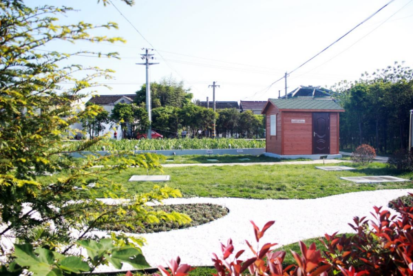 小游园设计,变废为宝。江苏启德水务有限公司采用“AOF+CEBF生态湿地+氧化塘”工艺原地建设站区,将原来不受欢迎的废弃用地变为村里一道优美的风景线,既能满足《农村生活污水处理设施水污染物排放标准》(DB32/3462-2020)一级A标准,又兼顾了环境的美观,利用物理和生化措施处理污水,体现一个“以生态治理生态”的人与自然和谐的治水理念。