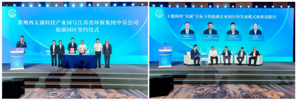中吴公司高度重视低碳日服务支撑工作,定期召开专题会议,安排专人分工,多次与部、省、市相关部门沟通对接,积极推动集团元素亮相低碳日活动;安排专人全程参与常州市低碳日活动相关准备工作,高质量做好会前准备和会场服务;在常州分会场上播放新北电镀园区宣传视频暖场,并开展武进电镀园区现场签约,展示先进的绿色低碳技术和产品,向公众传递绿色低碳发展的理念;与新能源集团、江苏时代CATL、武进绿建区等相关单位一起参加圆桌论坛,围绕“双碳”目标下的低碳企业园区的发展模式和推进路径进行研究探讨,共同推动绿色低碳技术的研发和应用。