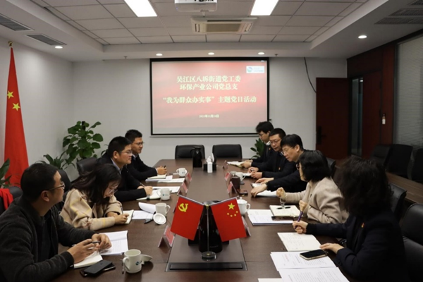 省环保产业公司与苏州市吴江区八坼街道党工委联合开展“我为群众办实事”主题党日活动。双方介绍了党史学习教育开展情况,分享党建工作经验、创新做法和阶段性建设成果。通过本次活动,在区域环境治理上加强合作,进一步改善环境质量、提升污染治理能力,高质量完成农村人居环境整治工作各项任务,为八坼街道在汤华村、黑龙村皮蛋废水、环境整治专业化管理方面提供技术支持。