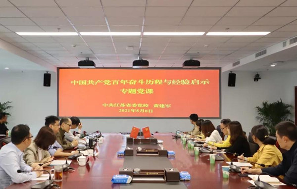 发布日期:2021-05-21 13:31 来源:省生态环境监测监控有限公司 字体:[ 大 中 小 ]为迎接中国共产党百年华诞,推进公司党史学习教育活动深入开展,引导广大党员干部学党史、悟思想、办实事、开新局,近日,省生态环境监测监控公司邀请中共江苏省委党校马克思主义学院黄建军教授作党史学习专题讲座《中国共产党百年奋斗历程与经验启示》。公司领导、各支部党员参加讲座。